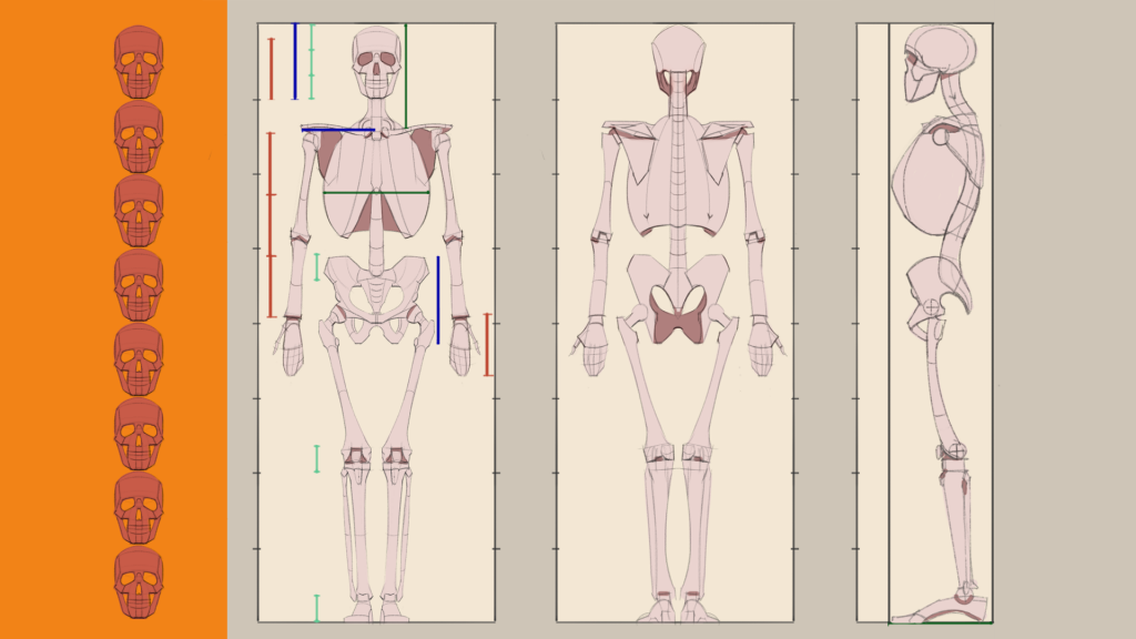Il corso introduce gli studenti allo studio delle proporzioni fondamentali del corpo umano e alla comprensione della struttura scheletrica di base, elementi indispensabili per realizzare figure equilibrate e coerenti. L’analisi delle principali forme anatomiche consente di semplificare il corpo in volumi essenziali, facilitando la costruzione del tronco e degli arti e sviluppando una lettura più consapevole dell’organizzazione della figura nello spazio.