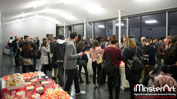 Il momento conviviale al buffet, dove tutti gli studenti e insegnanti, di tutte le sedi iMasterArt, fanno festa e si scambiano impressioni e commenti simboleggia l'armonia che si respira in un ambiente dove Arte e Progresso vanno a braccetto.
